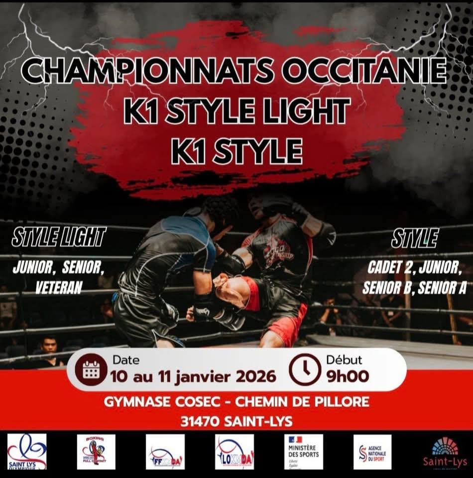 Championnat d’Occitanie, de K1 style et style Light à Saint-Lys – 10 et 11 janvier 2026